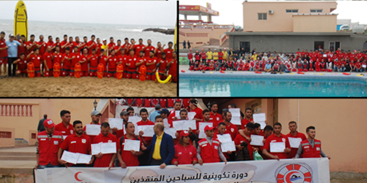 دورة تكوينية في الاسعافات المائية والتي استفاد منها شباب الجماعات الساحلية لاقليم الدريوش ومهنيي الصيد البحري بنفس الاقليم البالغ عددهم 76 مستفيد الذين تجاوبوا بسرعة وبشكل ايجابي مع المؤطرين و أبانوا عن رغبة أكيدة في تلقي المعلومات وتطبيقها في مجال الاسعافات المائية او في مجال المساعدات والتخفيف من حدة الغرقى أثناء وقوعها بتطبيق التصرف السليم وتوجت بانتقاء المنقذين المشاركين في اليوم الثالث والأخير يوم 23 أبريل 2017 بالمسبح التابع لفضاء أرزيو بجماعة بن طيب