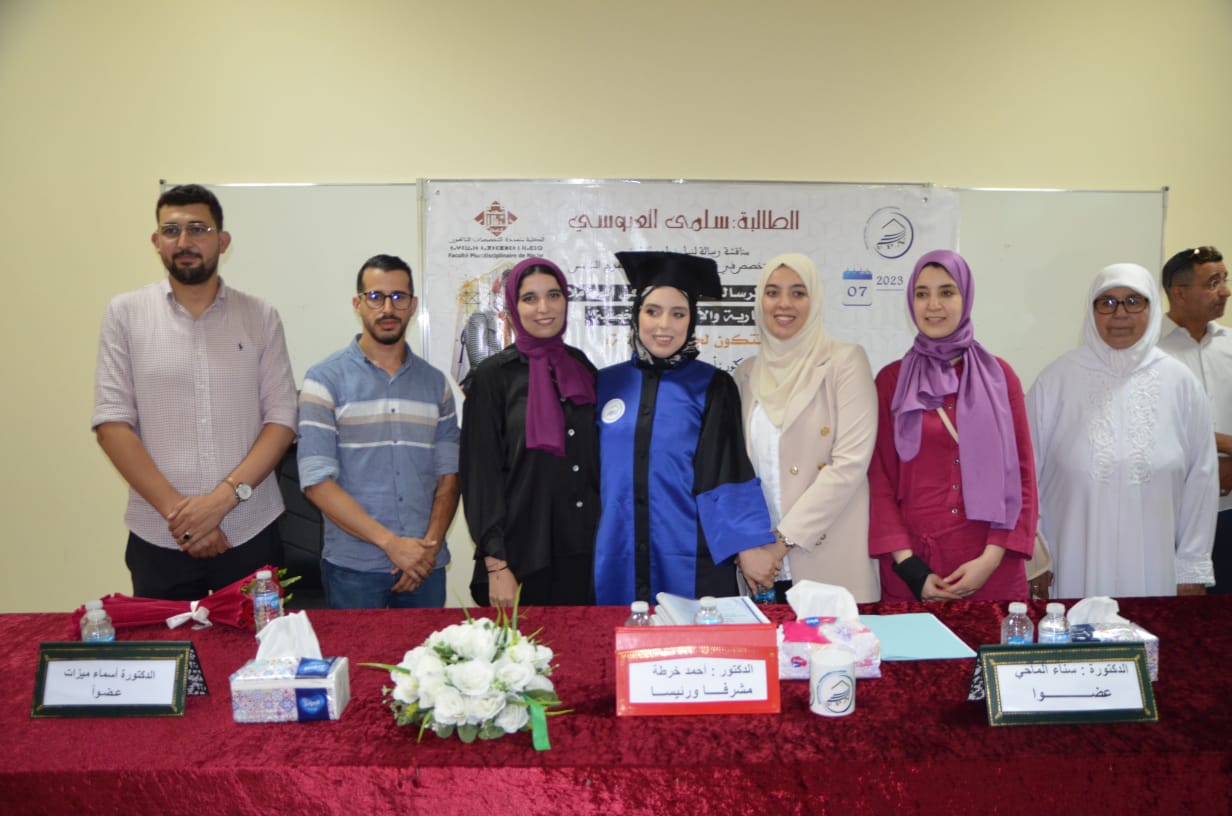 وقدمت الباحثة موضوعها وخلاصات بحثها أمام لجنة المناقشة المكونة من الدكتور “أحمد خرطة” أستاذ التعليم العالي بكلية الناظور مشرفا ورئيسا والدكتورة “أسماء ميزات” استاذة زائرة بكلية الناظور عضوة، والدكتورة “سارة أزواغ” استاذة زائرة بكلية الناظور عضوة.،والدكتور ” سناء الماحي” عضوة.