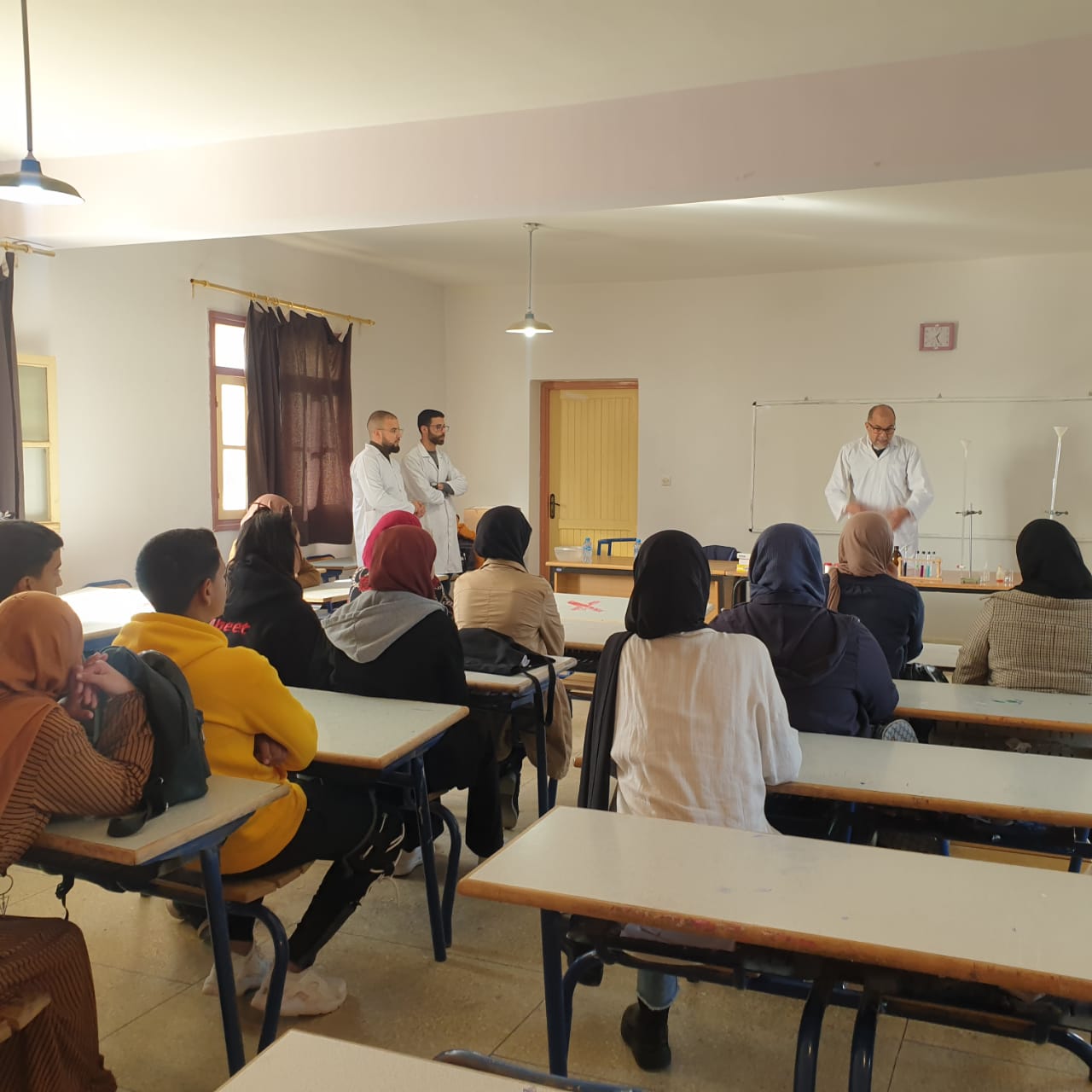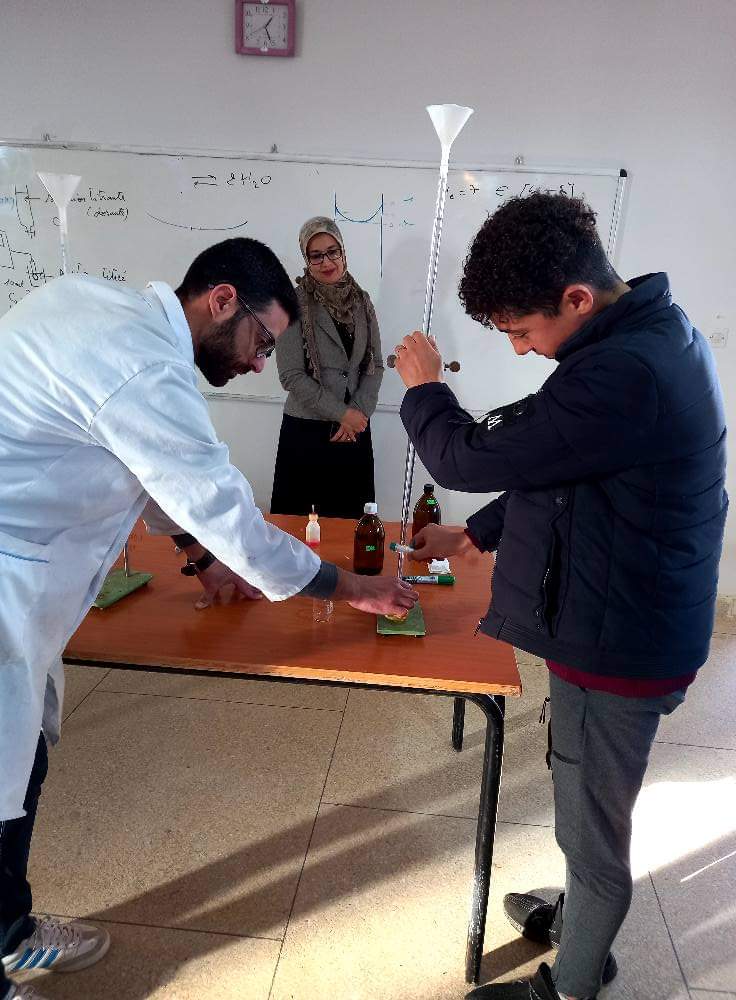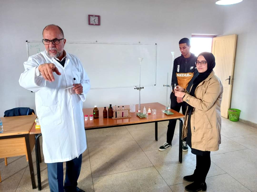 استقبل نادي التوجيه والإعلام بثانوية محمد السادس التأهيلية، الجمعة 17 دجنبر 2021، الأستاذ الجامعي الدكتور “بيلال عبد الحكيم” مرفوقا بمساعديه الأستاذ “البوطيبي محمد” والأستاذ “عبد الوهاب قروش” لتأطير ورشات علمية تهم مناولات كيميائية تتعلق بالمقررات الدراسية.