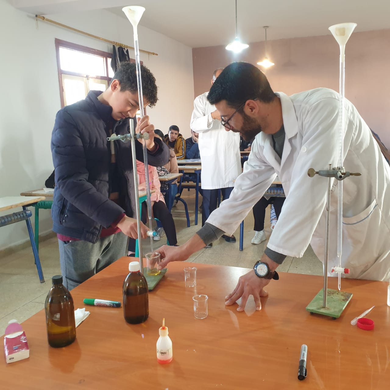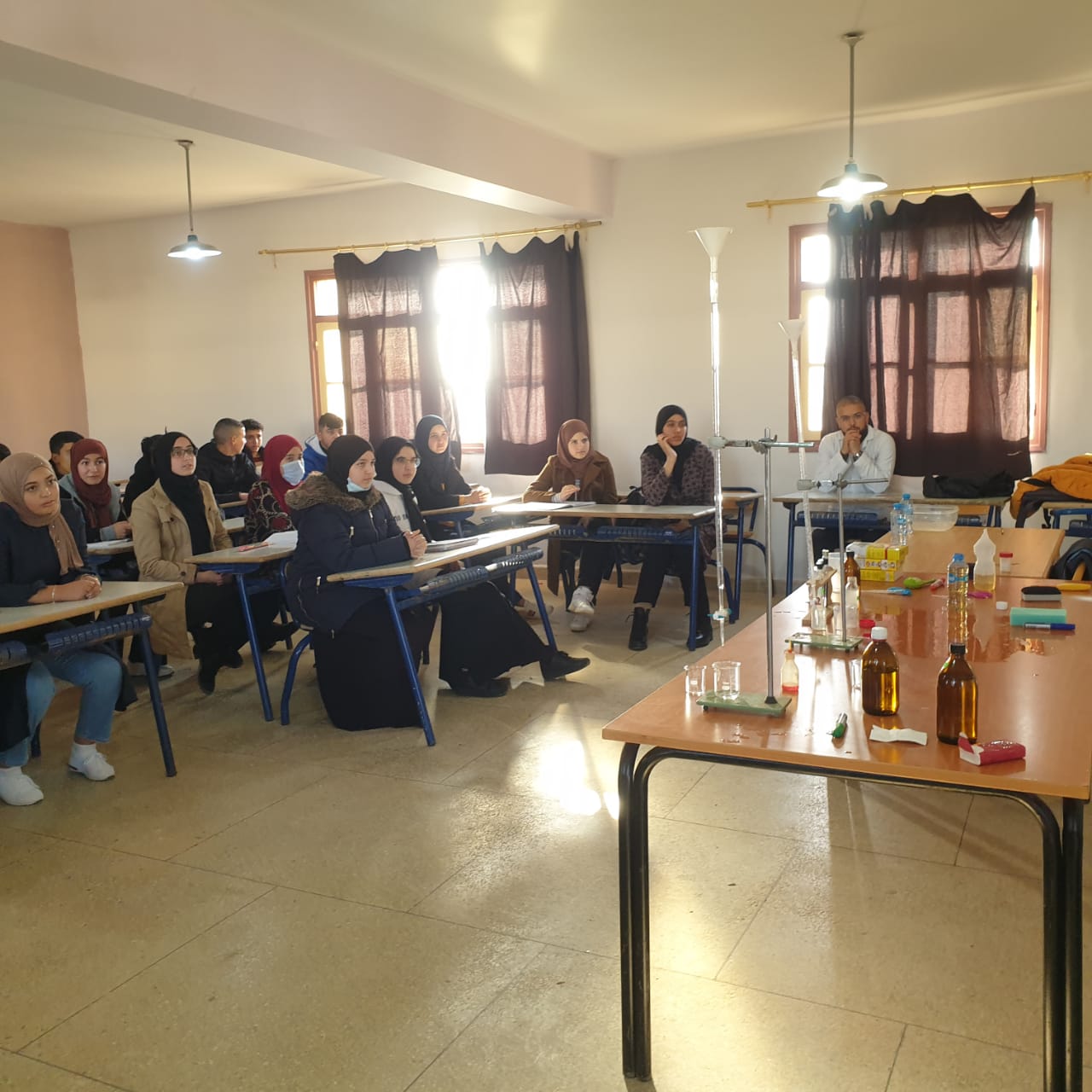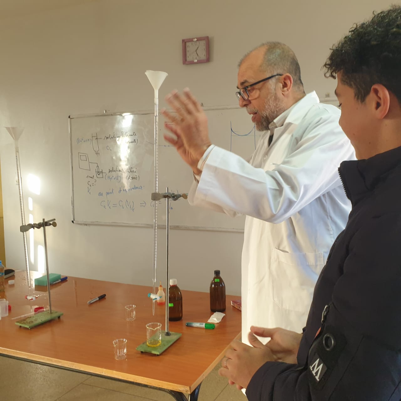 استقبل نادي التوجيه والإعلام بثانوية محمد السادس التأهيلية، الجمعة 17 دجنبر 2021، الأستاذ الجامعي الدكتور “بيلال عبد الحكيم” مرفوقا بمساعديه الأستاذ “البوطيبي محمد” والأستاذ “عبد الوهاب قروش” لتأطير ورشات علمية تهم مناولات كيميائية تتعلق بالمقررات الدراسية.