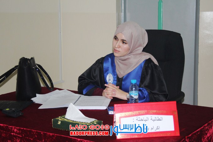 تمكنت الطالبة ”اكرام بلحرير” اليوم الاربعاء 19/12/2018، بكلية الناظور المتعددة التخصصات، من نيل دبلوم الماستر في القانون الخاص، بعد مناقشتها لرسالتها في مسلك ماستر قانون ” العقار والتعمير”، بحضور أساتذة وطلبة باحثين وعدد من أفراد الطالبة