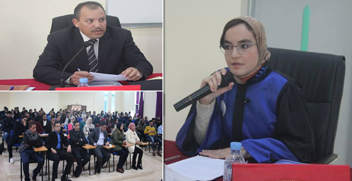 ناقشت الطالبة الباحثة “نسرين فليل”، في تخصص قانون العقار والتعمير , رسالتها للنيل دبلوم الماستر ، التي حملت عنوان “ التكييف القانوني للعقد ” الاسس النظرية والجوانب العملية“ وذلك مساء اليوم الجمعة 02-11-2018 برحاب الكلية.