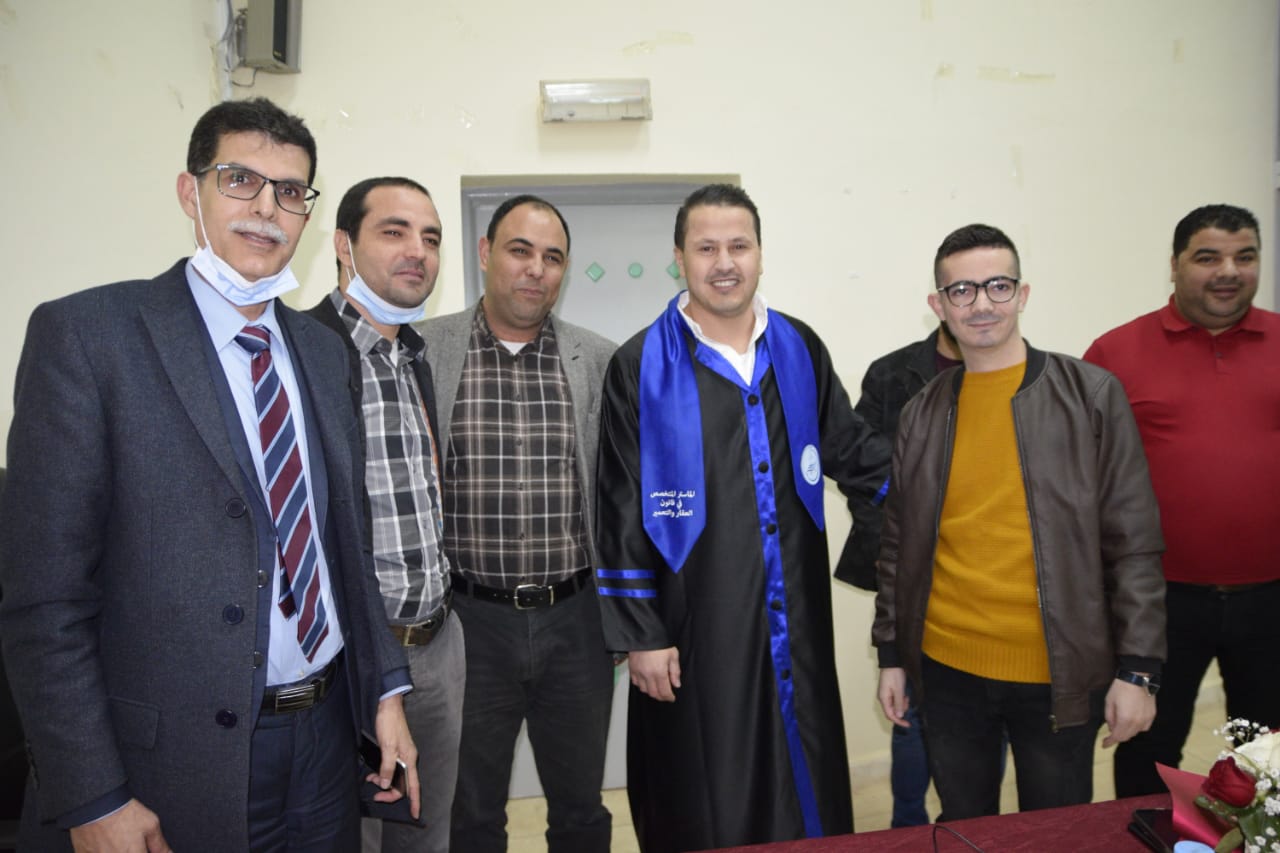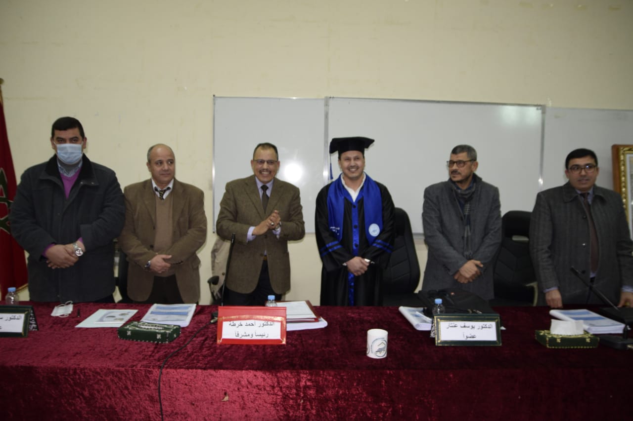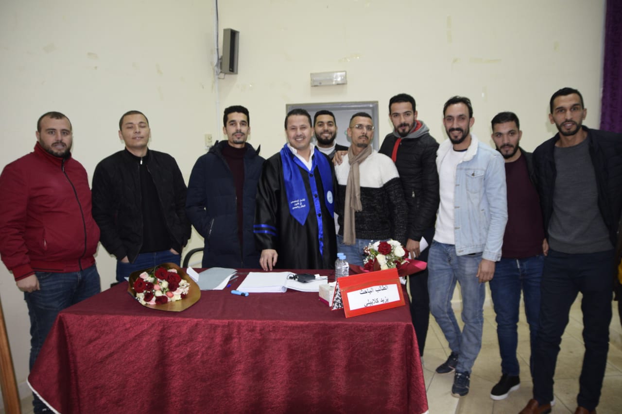 وعرفت جلسة المناقشة حضور الدكتور المشرف على الرسالة “احمد خرطة” والدكتور “يوسف عنتار” و الدكتور “احمد احيدار” والدكتور “سعيد انطيطح” المشكلين لللجنة المشرفة على مناقشة الرسالة البحثية التي تمت قبولها بعد مداولة أعضاء اللجنة.