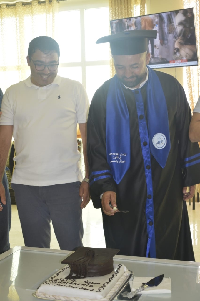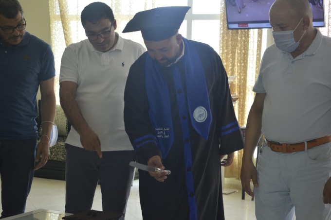 وفي السياق ذاته فان المناقشة عرفت حضور اساتذة جامعيين ومحامون وطلبة بالاضافة الى أفراد من عائلة الطالب الباحث