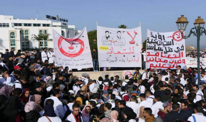 أعلن الأساتذة المتعاقدون عن نيتهم العودة إلى الشارع لاستئناف الاحتجاج حتى تحقيق مطالبهم، المتمثلة أساسا في إسقاط نظام التعاقد والإدماج في الوظيفة العمومية، منددين بتمادي وزارة التربية الوطنية والتكوين المهني والتعليم العالي والبحث العالي، في سياسة الآذان الصماء، وعدم التزامها بكافة الاتفاقيات والوعود التي تعهدت بها خلال جلسات الحوار.