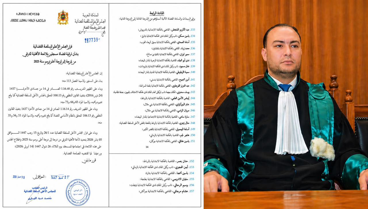 وتأتي هذه الخطوة في ظل التحولات التي يشهدها قطاع العدالة بالمغرب، والتي تسعى إلى ترسيخ دولة الحق والقانون، من خلال دعم كفاءات قضائية مؤهلة وقادرة على مواكبة التحديات، بما يعزز الأمن القضائي ويكرّس ثقة المواطن في العدالة.