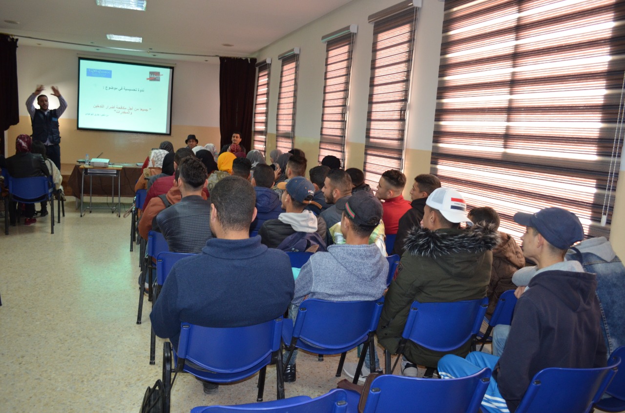 في سياق التعاون بين جمعية شركاء التغيير للتنمية والمواطنة من جهة ومركز البركة للتكوين والتوجيه والإدماج السوسيومهني. إحتضنت قاعة العروض بذات المركز ندوة تحسيسية بمخاطر التدخين والمخدرات تحت عنوان” جميعا من أجل الحد من أضرار التدخين والمخدرات أطرها الفاعل المدني طارق البوعيادي مساعد إجتماعي بمركز طب الإدمان وناشط بالجمعية المغربية للحد من أضرار المخدرات فرع الناظوروأشرف على تسييرها ذ.خالد بنحمان المدير التنفيذي لشركاء التغيير وذ.عبد الحفيظ أفنوع مسؤول الإدماج المهني والأنشطة السوسيوتربوية بمركز البركة.