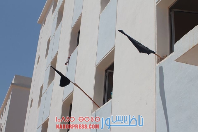 في سياق ردود الفعل الاحتجاجية الواسعة التي خلفتها الاحكام القاسية الصادرة في حق معتقلي حراك الريف المتواجدون بسجن عكاشة بالدار البيضاء، شهد الحي الجامعي التابع لكلية الناظور المتعددة التخصصات منذ صباح اليوم الخميس 28/06/2018، وضع أعلام سوداء في نوافذ غرف بذات الحي من طرف طلبة، وذلك للتنديد بالاحكام السابقة الذكر