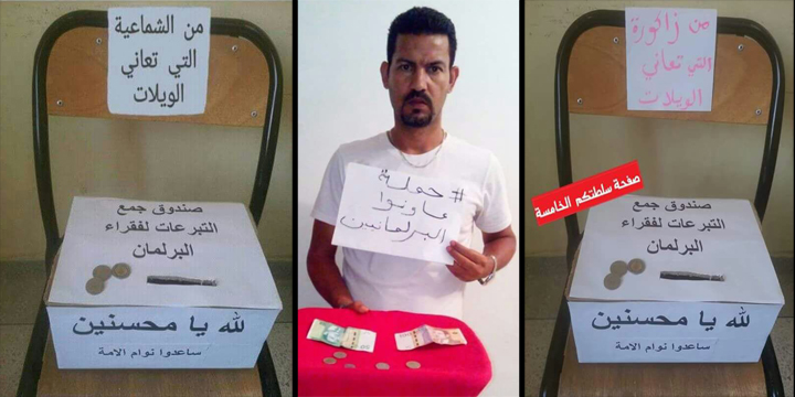 ودعا “فايسبوكيين” للتبرع للبرلمانيين عبر حمل لافتات مكتوب عليها هاشتاغ “#حملةعاونواالبرلمانيين”، حيث كتب أحد رواد الفيسبوك “بما أن اليازمي وصف البرلمانيين انهم يعانون الفقر المدقع، و كا يدافعوا باش يبقا ليهم معاش مدى الحياة، لما لا نفتح حملة لجمع التبرعات لهم”، وأضاف ناشط آخر أن “المواطن لي كايربح 20 درهم فالنهار ماشي “فقير” والبارلماني لي كايشد 4 لملاين فالشهر “فقير”.