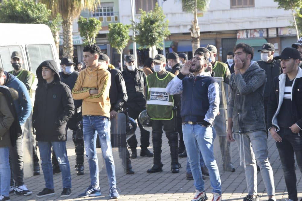 و قد شهدت الساحة إنزالا مكثفا للقوات العمومية، حيث حاولت قمع المسيرة و ثنيها عن الوصول إلى شارع الجيش الملكي، نجم عن ذلك وقوع إصابات متفاوتة الخطورة في صفوف المحتجين، قبل أن ينجح المتظاهرون في الزحف بالتظاهرة إلى الشارع العام بشكل سلمي.