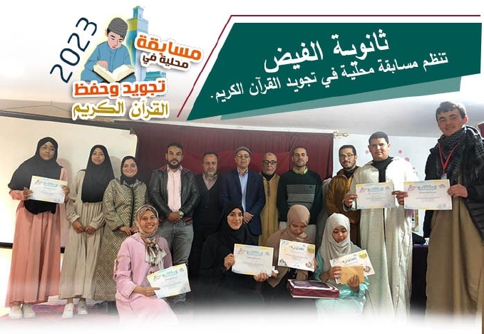 بمناسبة شهر رمضان الأبرك، وتعزيزا لمنظومة القيم بالوسط المدرسي عبر تشجيع المتعلمين على الاهتمام بكتاب الله تلاوة وترتيلا وحفظا وعملا، وتحت شعار: “اقرأ وارتق”، نظم نادي الفيض للثقافة والفنون مسابقة محلية في تجويد المصحف الشريف لفائدة تلامذة المؤسسة بشراكة مع جمعية أولياء أمور التلاميذ، وذلك زوال يومه الجمعة 07 أبريل 2024، بقاعة الأنشطة التابعة للمؤسسة.
