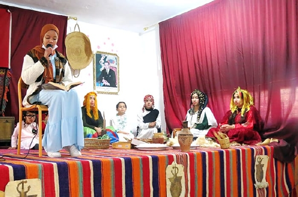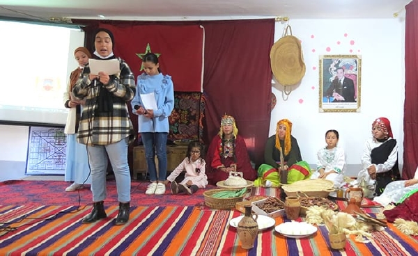 هذا وشهدت الأمسية أيضا احتفالية كبرى بالسنة الأمازيغية الجديدة من خلال تقديم التلاميذ المشاركين قراءات شعرية وأغاني باللغة الأمازيغية علاوة على عرض الموروث الثقافي الأمازيغي ممثلا في الأزياء والحلي والأكلات والأدوات والأفرشة الأمازيغية مما يعكس تنوع وغنى الحضارة المغربية التي يشكل فيها المكون الأمازيغي أهم روافدها.
