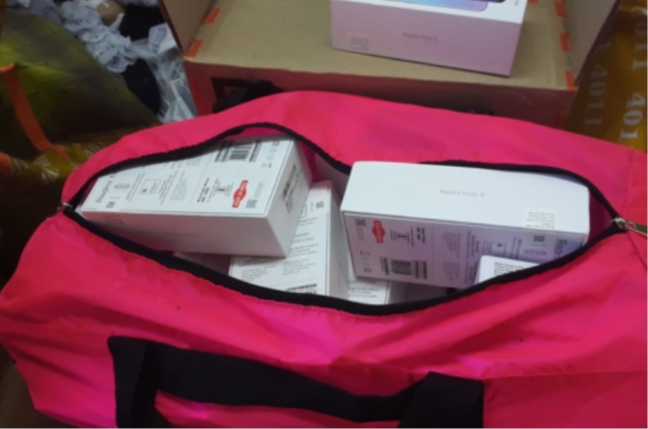 مصادر الموقع أوردت أن تفتيش السيارة المرقمة بإسبانيا مكن من حجز 2087 هاتفا نقالا، بينها 733 هاتفا جديدا، و500 زوج من الأحذية الجديدة، حاول السائق تمريرها دون التصريح بها.