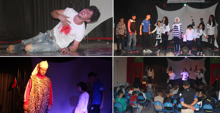 وقد تم إفتتاح هذه الأمسية بعد كلمة للفاعل الجمعوي والممثل المسرحي بلال سكيت ، (افتتاح) بأيات من القران تلاها الطالب سميح أنوجي، هذا قبل تقديم مجموعة من الأنشطة والعروض المتنوعة، من رقصات تربوية ولوحات تعبرية ومسرح .. من ضمنها عرض يعالج قضية فلسطين وكذا مسرحية حول الواقع والحلم، وهي مسرحية تحاكي وضعية المواطن البسيط وعلاقاته مع المسؤولين والمؤسسات.. ، حيث يضم السيناريو مجموعة من الرسائل التوعوية والنقدية ويسلط الضوء على الفساد وكذا على المسؤولين عن الوضعية المزرية التي يعيشها المواطن البسيط.. وفي هذا السياق دخل بطل المسرحية في مشهد يجسد دخول شخص في حلم يتمتع ضمنه بكل حقوقه المشروعة ومطالبه الاساسية قبل أن يستيقظ على الواقع المعاش ويجد أن لا شيء تغير وأن كل ما عاشه كان مجرد حلم