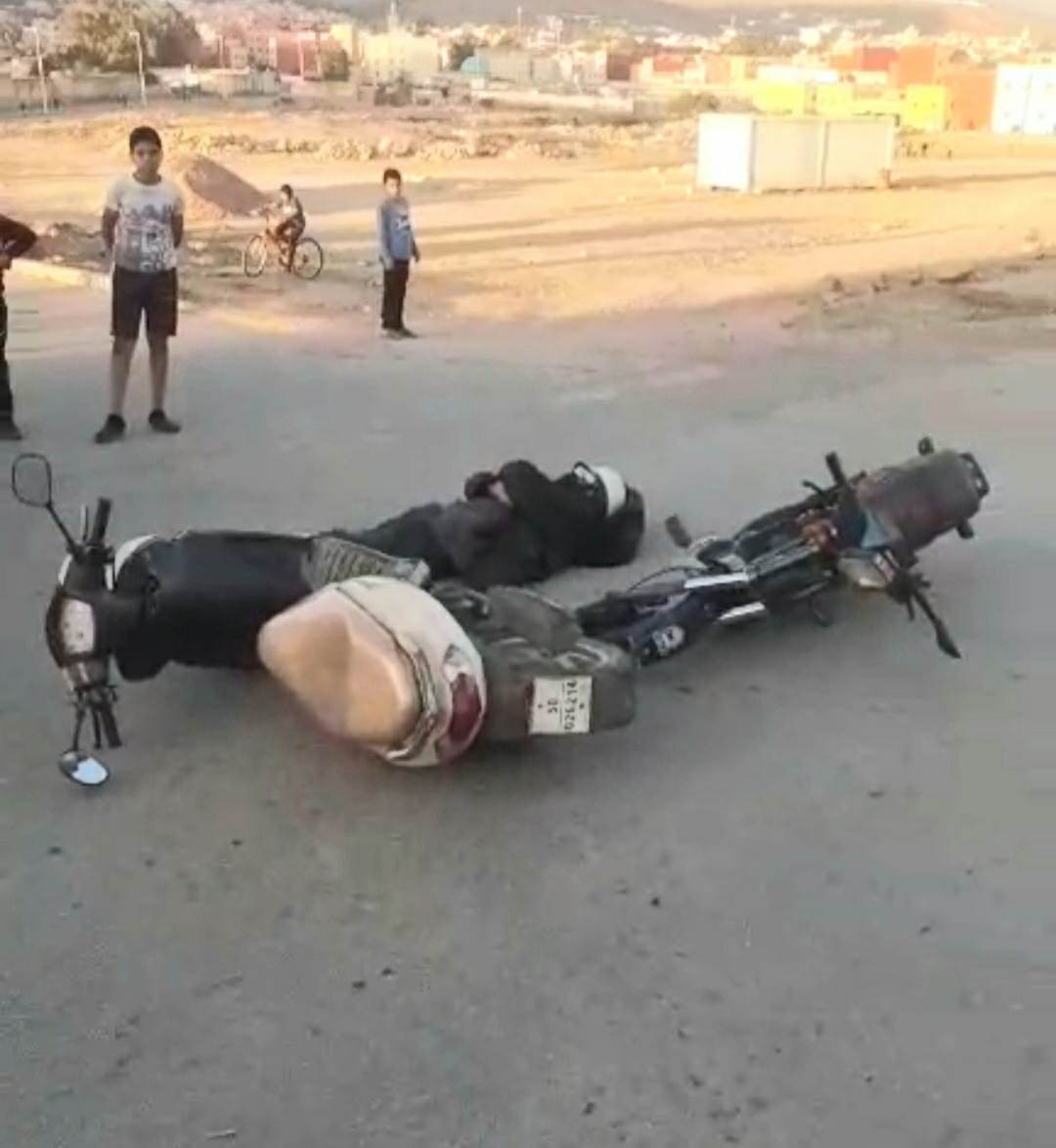 حادثة سير خطيرة بين دراجتين في مدخل ازغنغان