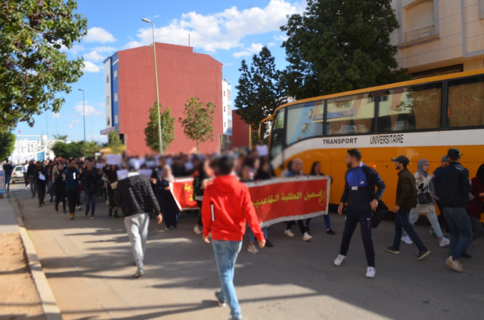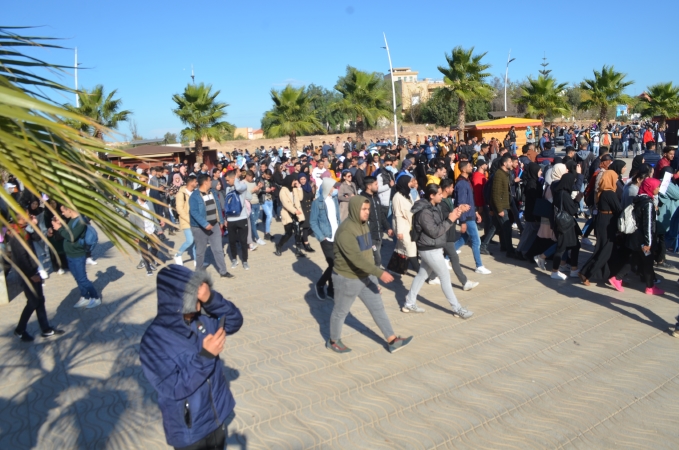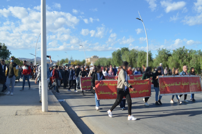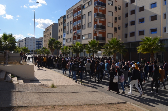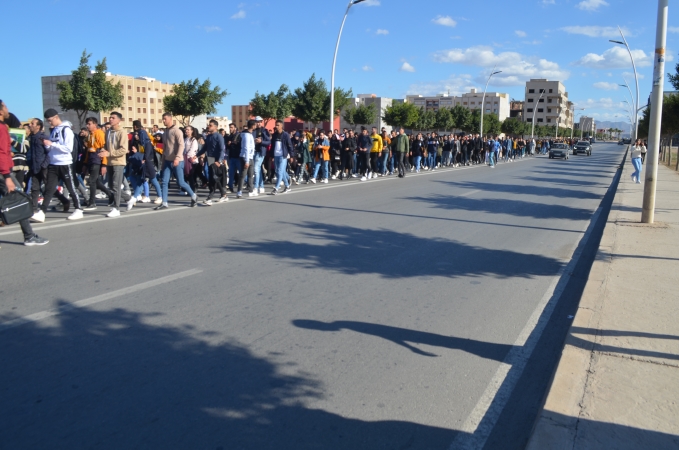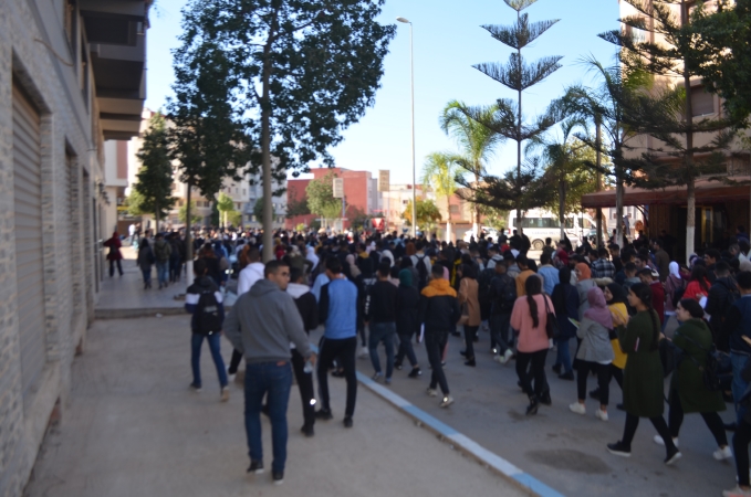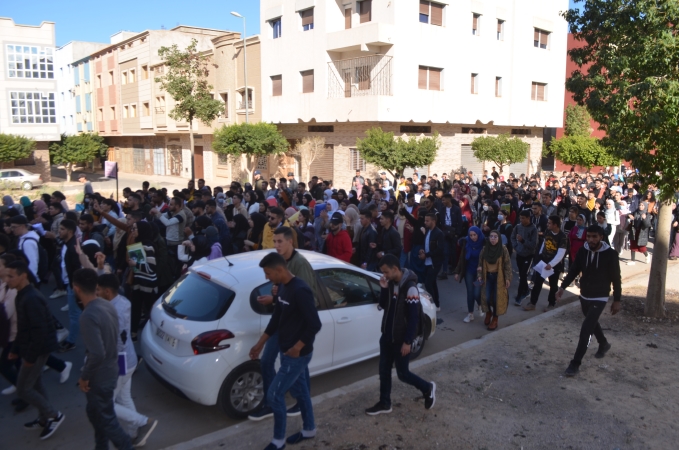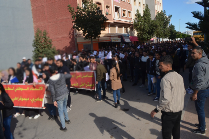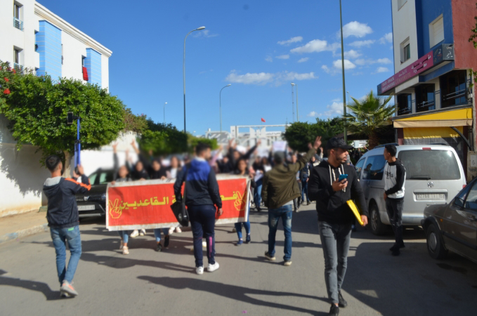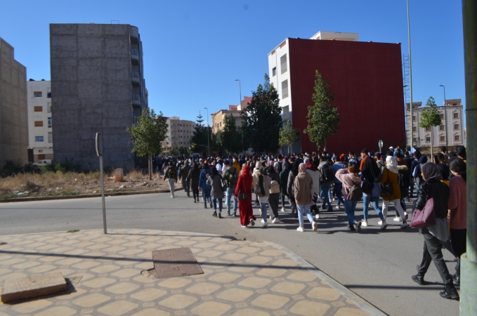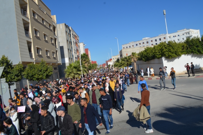 نظم المئات من طلبة كلية الناظور زوال اليوم الاثنين 22/11/2021، مسيرة احتجاجية تنديدا بالقرارات الصادرة عن وزارة التربية الوطنية والرياضة، المتعلقة بمنع المجازين البالغين أكثر من 30 سنة من اجتياز مباريات الوظيفة العمومية المتعلقة بولوج سلك التعليم.