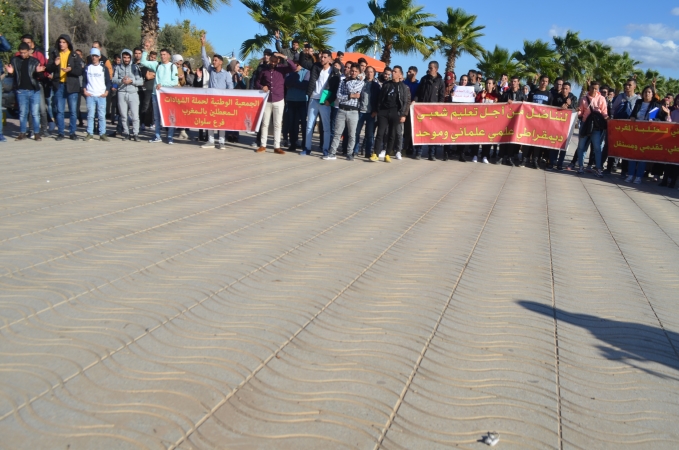 هذا وقد ردد الطلبة المحتجين بعد مقاطعتهم للدراسة خلال الفترة المسائية شعارات استنكارية لقرارات الوزارة ، مؤكدين أن ما قام به الوزير بنموسى يسير عكس طموحات الطلبة الجامعيين، ويستهدف بالأساس أبناء الفقراء والبسطاء ممن يرون في الولوج لمهنة التعليم النافذة الوحيد لإنقاذهم من شبح البطالة.