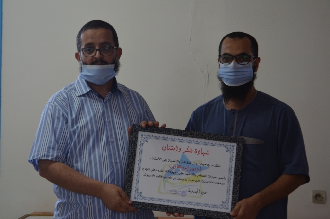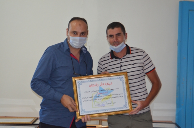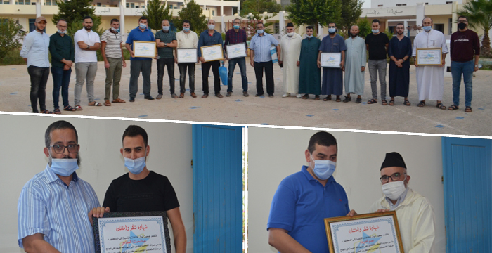 نظمت جمعية انوال للثقافة والتنمية ببن الطيب مساء اليوم الاربعاء 30/09/2020 حفلا تكريميا لمجموعة من الأساتذة الجامعيين والطلبة الباحثين المشرفين على تنظيم امتحانات الدورة الربيعية العادية 2019/2020 بمركز بن الطيب اعدادية بن الطيب 1″.