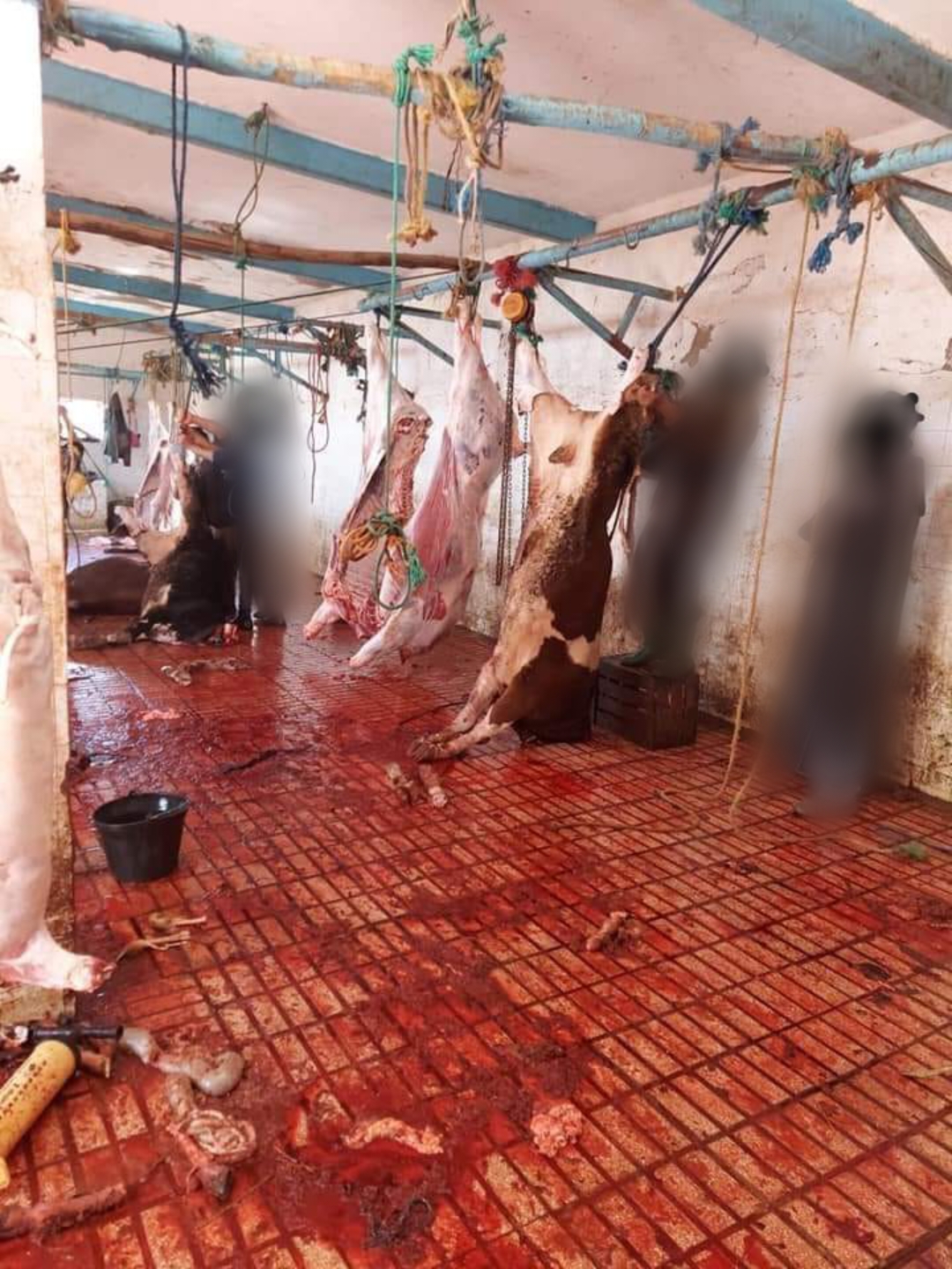تداول نشطاء على موقع التواصل الاجتماعي “فايس بوك” عدد من الصور وصفت بالكارثية، تم إلتقاطها من داخل مجزرة بن الطيب.