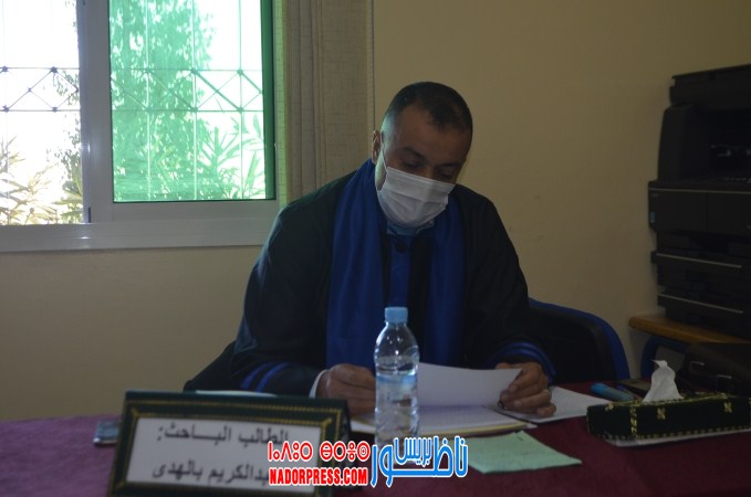 ناقش الطالب الباحث “عبد الكريم بالهدى” ابن مدينة الناظور ، صباح يوم السبت 21/11/2020 بكلية الناظور المتعددة التخصصات ، رسالته لنيل دبلوم الماستر في القانون الخاص تحت عنوان “مخالفات التعمير بين النص القانوني والعمل القضائي”.