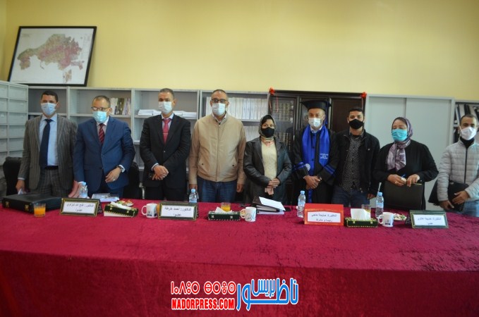 وكانت لجنة المناقشة مكونة من الدكتورة “صليحة حاجي”أستاذة التعليم العالي بصفتها رئيسا ومشرفا، والدكتور”أحمد خرطة”، أستاذ التعليم العالي بكلية الناظور عضوا، بالإضافة إلى الدكتورة “خديجة علاوي”، أستاذة التعليم العالي بالكلية المتعددة التخصصات بالناظور . إلى جانب الدكتور “فتح الله تيزاوي “قاضي بمحكمة وجدة.