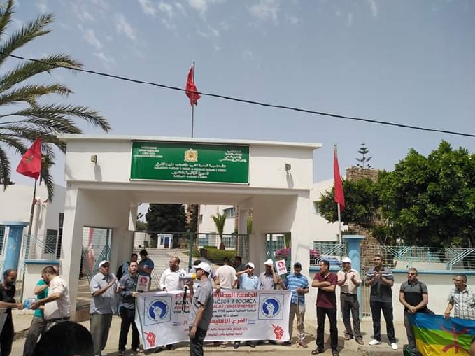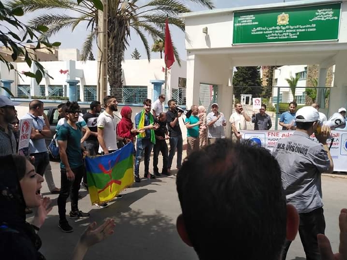 نظمت الجامعة الوطنية للتعليم وفعاليات جمعوية ونقابية بالإضافة الى نشطاء منضوين تحت لواء الحركة الأمازيغية، اليوم الاثنين، وقفة احتجاجية أمام مديرية وزارة التربية الوطنية بالناظور للتضامن مع أمحمدي عبد الرزاق، أستاذ التعليم الابتدائي، وذلك بعد إحالته من طرف المديرية على المجلس التأديبي بتهم اعتبرها المحتجون غير حقيقية.