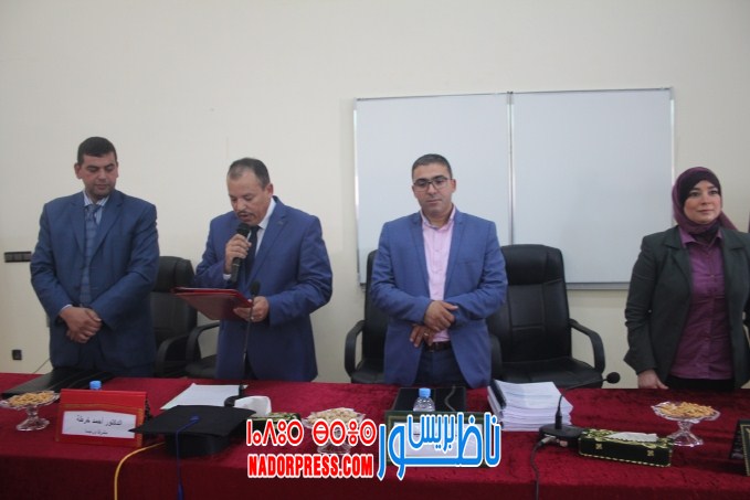 وفي نهاية المناقشة قررت اللجنة المكونة من المشرف على الرسالة ورئيس اللجنة الأستاذ الدكتور “أحمد خرطة” والدكتور “أحمد أحيدار” نائب وكيل الملك بالمحكمة اﻹبتدائية بالناظور ،والدكتور “ نجيم أهتوت ”أستاذ بكلية الحقوق بفاس والدكتورة”عزيزة الغداني” أستاذة بالكلية المتعددة التخصصات بالناظور(قررت) قبول الرسالة بميزة مشرف جدا مع التوصية بالنشر