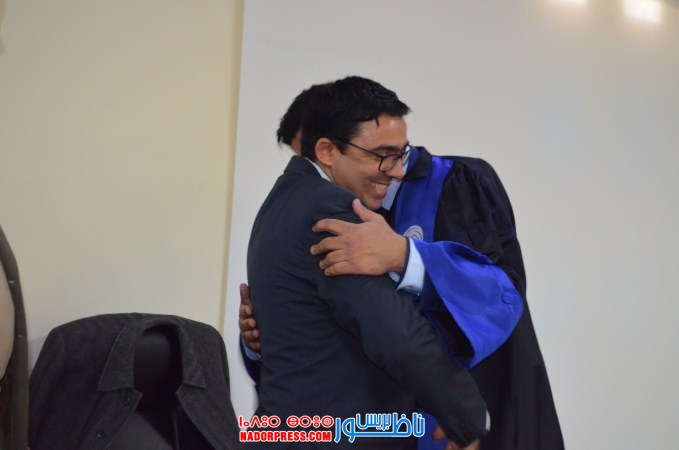 وكانت لجنة المناقشة مكونة من، الدكتور”أحمد خرطة” أستاذ التعليم العالي بالكلية المتعددة التخصصات بالناظور وهو المشرف على الرسالة، والدكتور”نجيم أهتوت” أستاذ التعليم العالي بالكلية المتعددة التخصصات بالناظور والدكتور “أحمد أحيدار”استاذ زائر بالكلية المتعددة التخصصات بالناظور عضوا، والدكتور “نجيب شوقي” مستشار بمحكمة الاستئناف بالحسيمة عضواً.