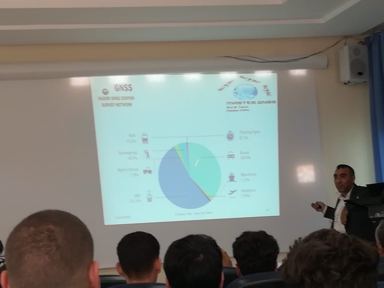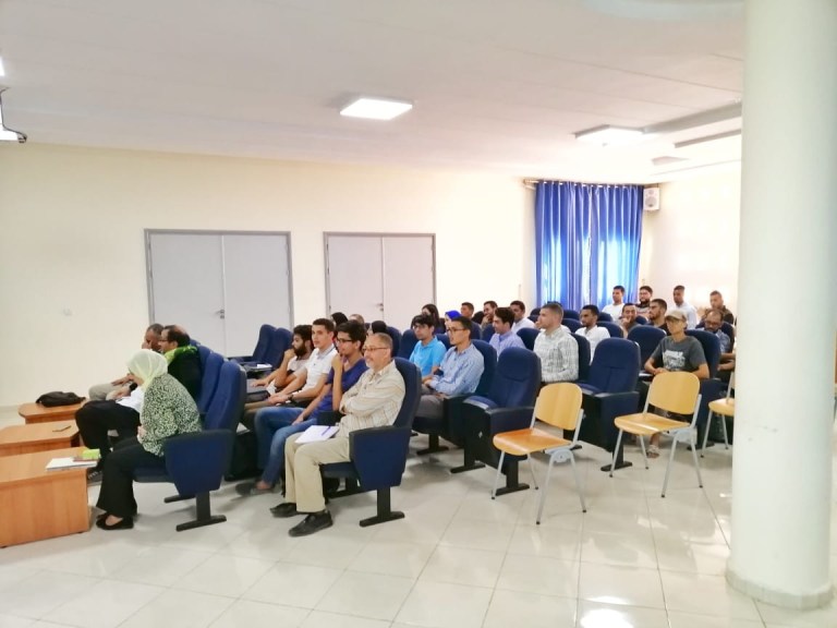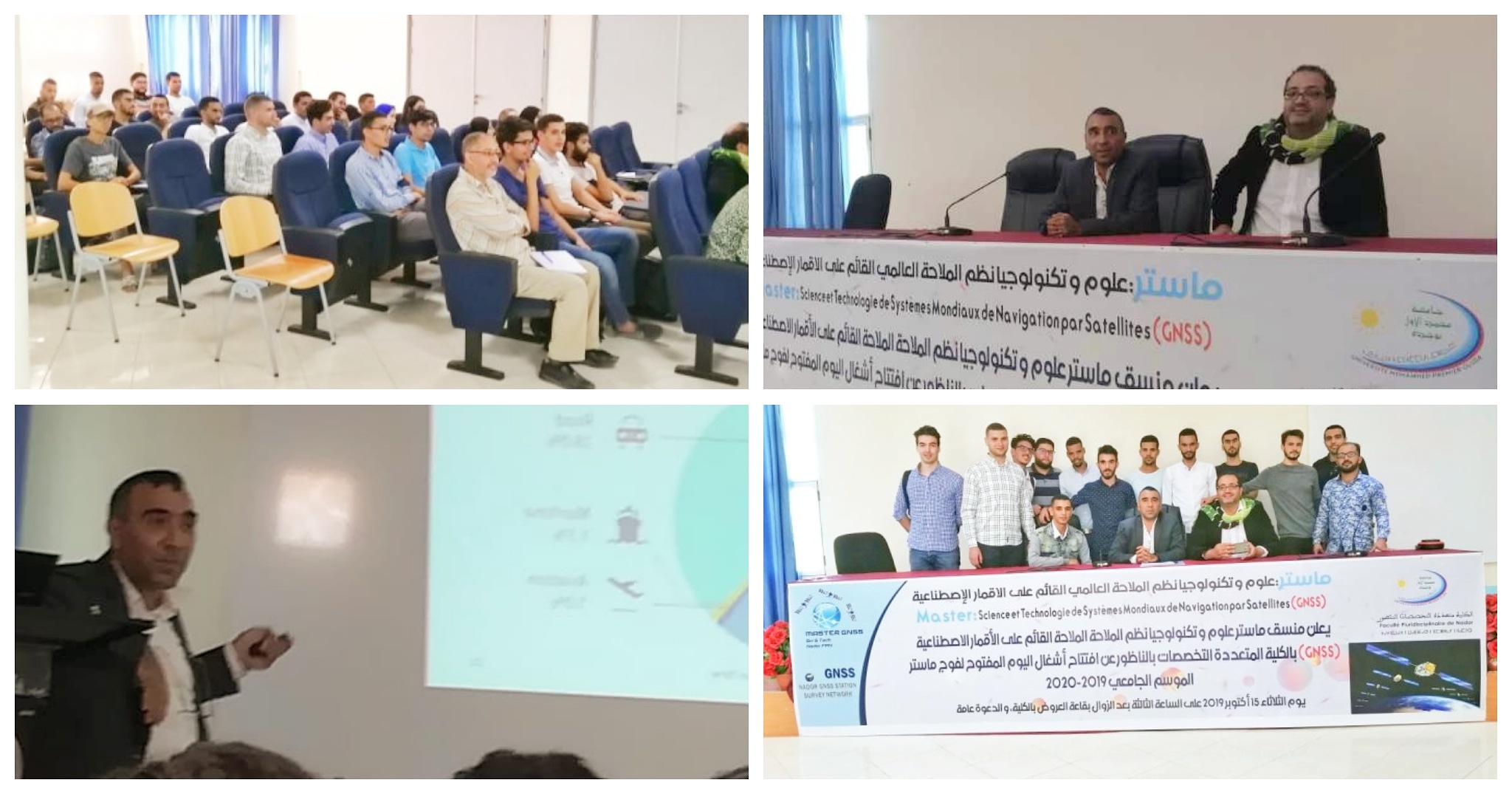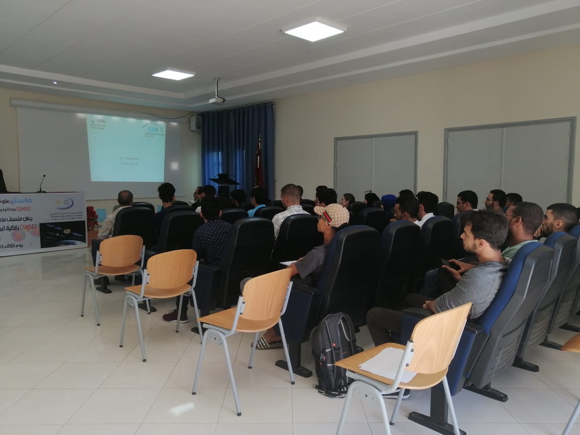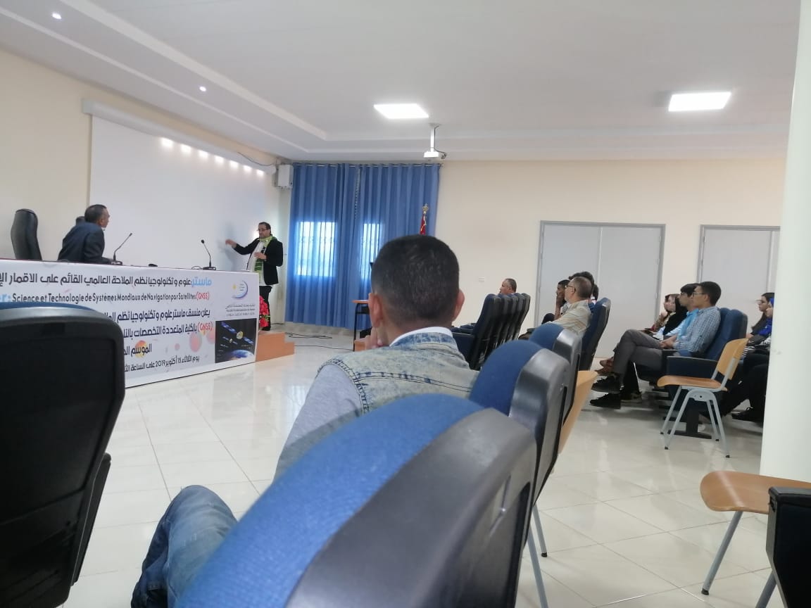 في البداية تناول نائب العميد المكلف بالبحث العلمي كلمة ترحيبية بالحضور أصالة عن عميد الكلية المتعددة التخصصات ليوجه بعد ذلك منسق المستر الكلمة للطاقم البيداغوجي. بعد ذلك تناول منسق الماستر الدكتور “اليماني ضياف” كلمة ترحيبية ليسـتأنف المداخلة بتقديم مفصل حول تكنولوجيا الأقمار الإصطناعية وما حققه طاقمه من بنية تحتية داخل الكلية على رأسها المحطة التي تم تشيدها قبل سنتين والتي منحت كهبة من ألمانيا من طرف شركة ترمبل لتساهم في دعم لوجستيك التكوين التطبيقي العالي والبحث العلمي لهذا المسلك.