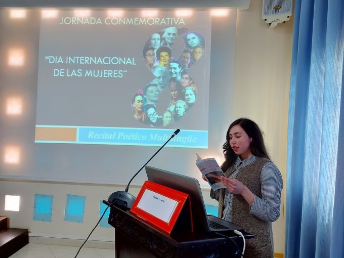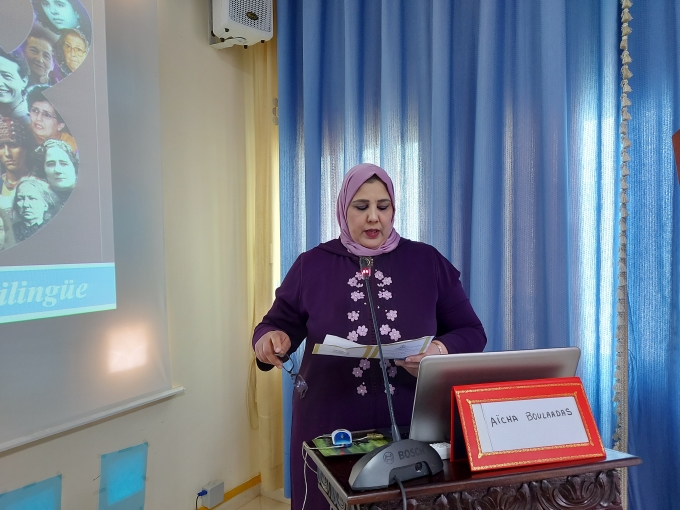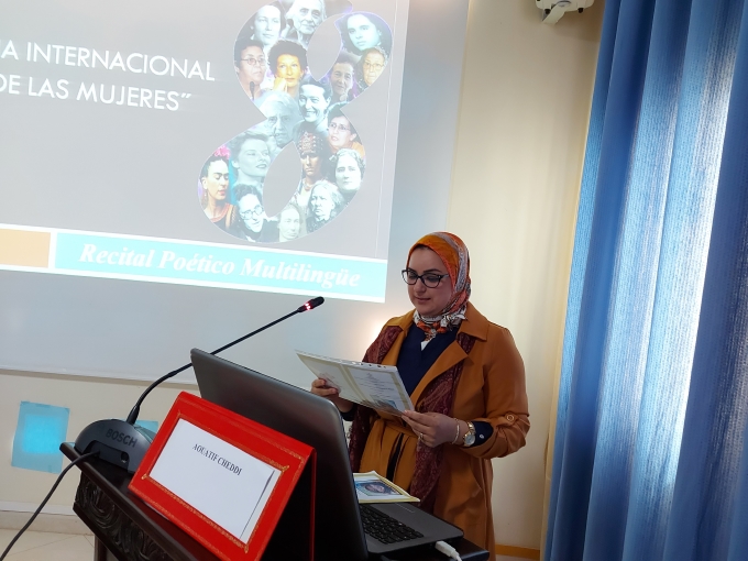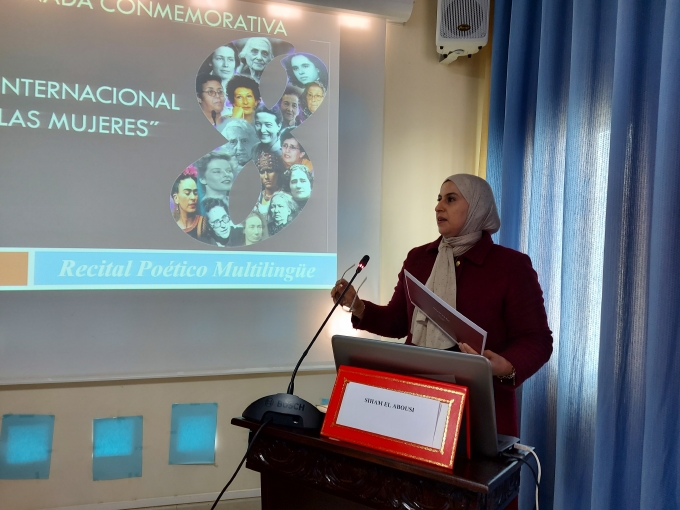 احتضنت قاعة الندوات بالكلية المتعددة التخصصات بالناظور، يوم الأربعاء 17 مارس 2021 ، يوما دراسيا شِعريًا بمناسبة عيد المرأة الأُمَمي 8 مارس، أعدَّهُ ماستر “المغرب والعالم الناطق بالإسبانية: لغة، آداب، ترجمة ومثاقفة”، عن قسم الدراسات الإسبانية. واِفتُتح اليوم الدراسي بكلمة ألقاها نائب العميد المكلف بالشؤون البيداغوجية ذ. أبو عبدالسلام الإدريسي أبرز فيها أهمية هذا النشاط -الذي يُعد الأول للماستر- في تطوير البحث العلمي وتشجيع الطلبة والطالبات على الاشتغال بمواضيع تخص مقاربة النوع. أعقبتها كلمة رئيس شعبة اللغة الإسبانية وآدابها ذ. سيف الإسلام بن عبد النور الذي بدوره نَوَّهَ بالعمل الجبار الذي تقوم به الكلية المتعددة التخصصات، وجامعة محمد الأول لترسيخ روح المناصفة وتثمين دور المرأة في الميدان الأكاديمي. ثم تَلَتها مُحاضرة مُنسقة الماستر ذة. كريمة بوعلال، قدمت فيها ورقة افتتاحية بعنوان: “نساء مُبدعات: لمياء العمراني، شهيدة حميدو وفاضمة الورياشي نموذجا.”