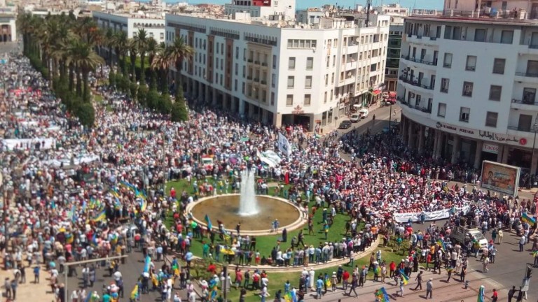 وعرف شارع محمد الخامس، وسط مدينة الرباط، حضور الآلاف من المواطنين الذين حجوا من مدن مغربية مختلفة، خصوصا من مدن الريف، مطالبين بإطلاق سراح المعتقلين على خلفية حراك الريف الصادرة في حقهم أحكام ثقيلة وصلت إلى 20 سنة.