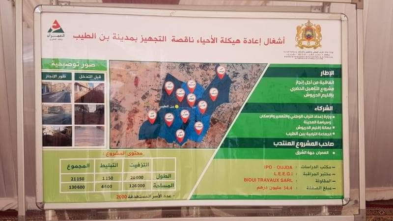 وفي هذا السياق تتبعت الوزيرة اشغال إعادة تهيئة مجموعة من الأحياء الناقصة التجهيز بكل من جماعة ميضار والدريوش وبن الطيب.. وقد اطلعت “بوشارب” على مجموعة من الشروح و البيانات التوضيحية في مجال تدخل وزارتها بمجموعة من الأحياء بالإقليم