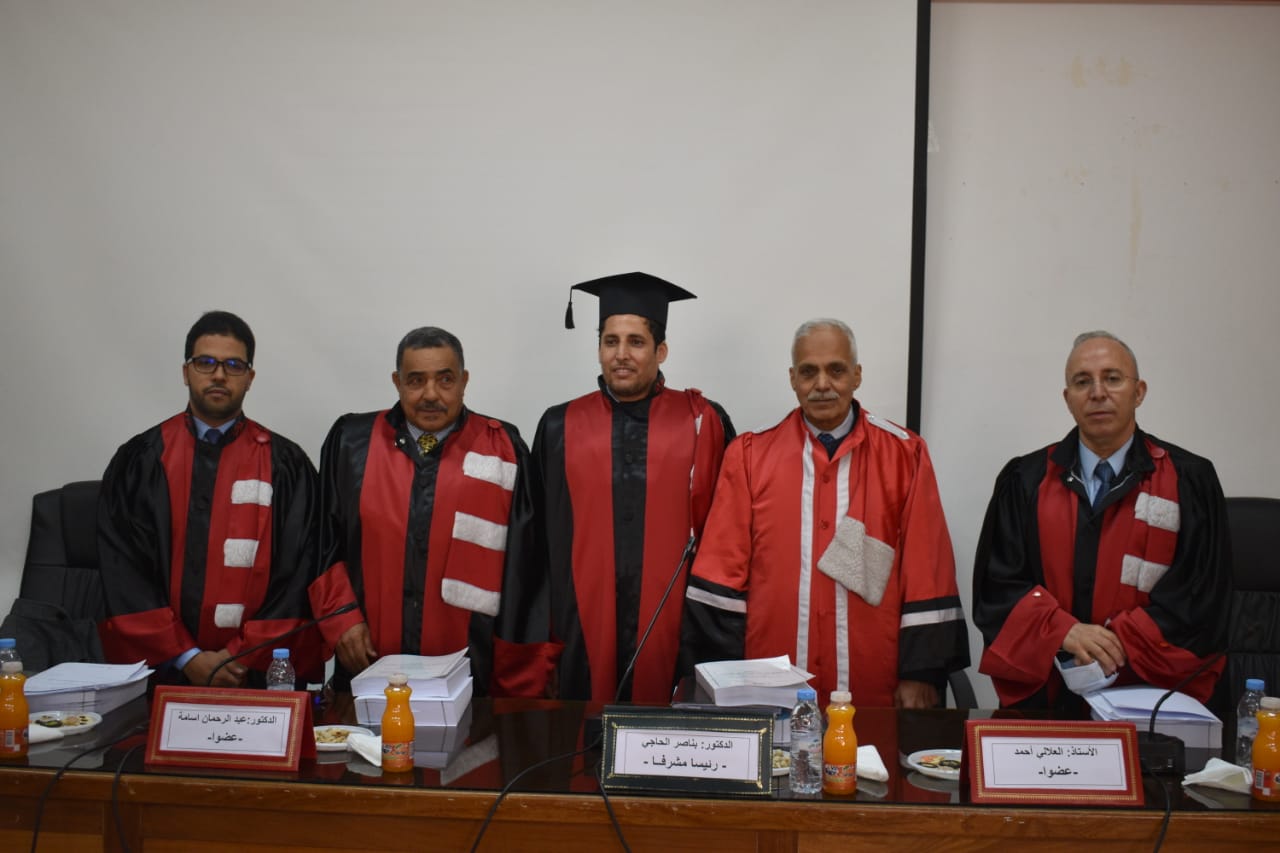 الطالب فهد حيلوة ناقش رسالته امام لجنة علمية مكونة من الدكتور بناصر حاجي استاذ التعليم العالي بكلية الحقوق بوجدة رئيسا و مقررا